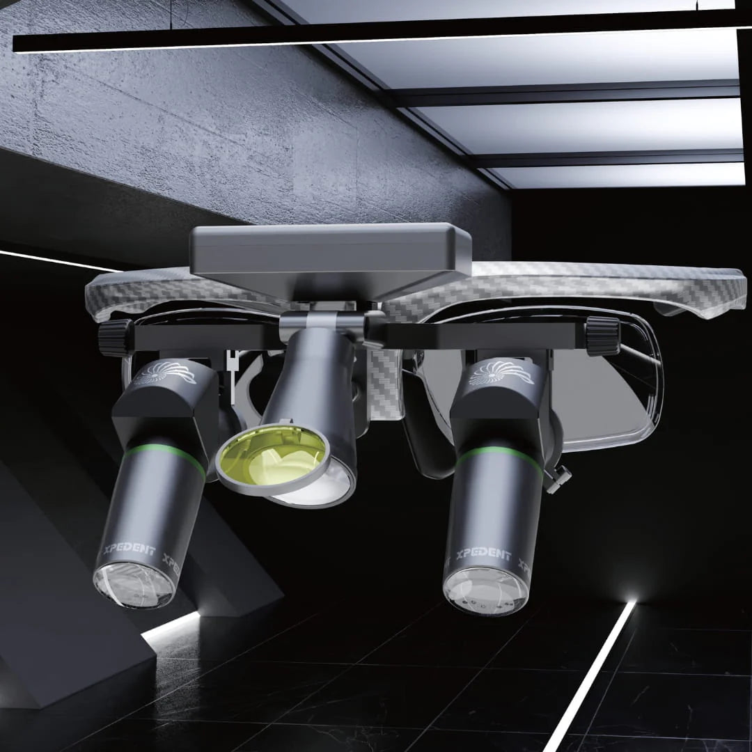 XPEDENT CarbonFore Galilean are professional dental loupes designed for maximum comfort and daily use in the clinic. The unique front support system completely eliminates pressure on the nose, providing a relaxed working experience even during long procedures.
